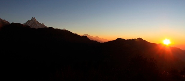 Auf dem Rückweg ins Tal machen wir noch einen Abstecher zum Poon Hill ein dem massiv vorgelagerter „Hügel“ der von 3200m Höhe ein unvergleichliches Panorama dieses Gebietes bietet und so jeden Morgen zum Sonnenaufgang von dutzenden Menschen besucht wird.