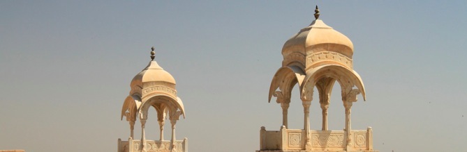 Hauptziel unseres Abstechers hierher ist das Fort. Eine Ansammlung künstlerischer Hochleistungen über die Jahrhunderte lässt spontan einen Hauch von Tausendundeinernacht aufkommen... Faszinierende Architektur und verspielte Liebe zum Detail treffen hier geradezu genial aufeinander. Eine Augenweide. Ein Bummel durch die quirlige Altstadt und ein Ausflug zur Gedenkstätte der verstorbenen Herrscher von Bikaner runden unseren Aufenthalt ab.